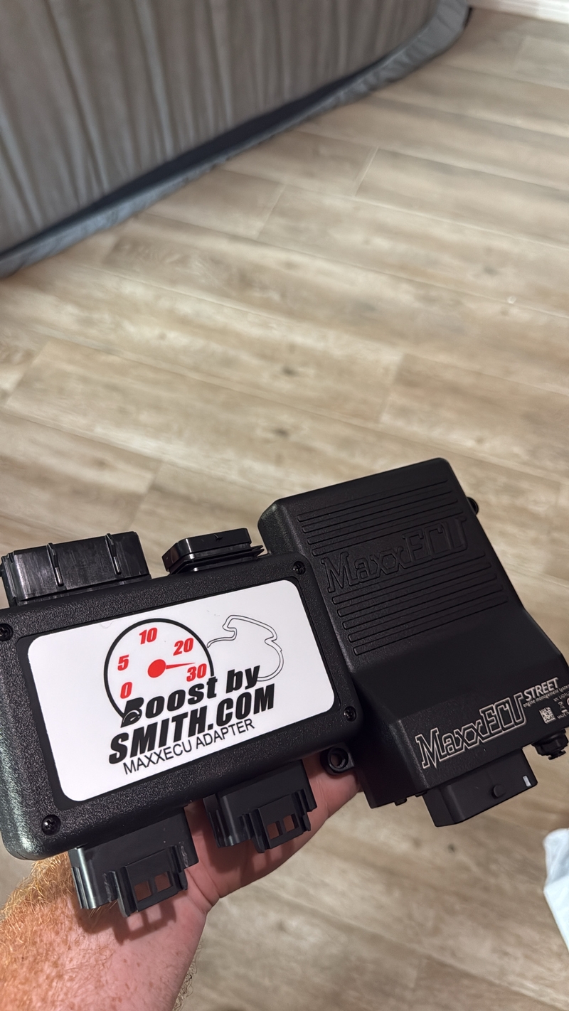 Cool beans! So the MaxxECU plugs up to the stock ECU via the Smith adapter. I looked over the various models of MaxxECUs offered and thought I might go for one of the larger ones if it would be any advantage on a bike. Of course, there's the issue of it fitting under the seat so the small MaxECU seems the obvious choice. ...although I long planned to cut out the pillion seat and foam on a ZX-14 to make a very large under seat compartment. Just leave the rear latch on and cut the middle out. I'll try it someday. I'd also like to have a seat cowl that lifts up on a hinge somehow for quick access. Not real sure about messing with fairings on a 200 mph bike though.