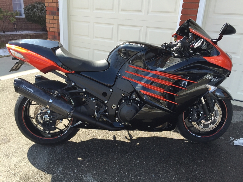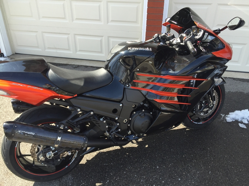 New member here, just picked up 2014 ZX-14R black/candy orange...it was not my first color choice but once I saw it I liked it a lot....doing some simple mods as it is still too cold to ride...levers, reservoirs, quick shifter ,