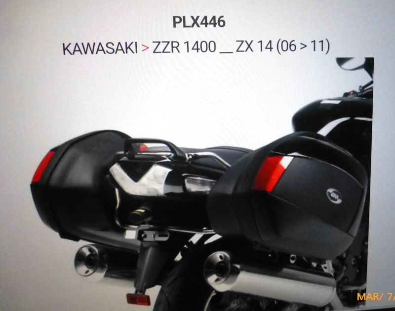 eBay lists Givi racks PLX446 for V35 Givi cases. They mount differently in the rear. Made for the ZX1400 European model with the passenger grab handle showing.