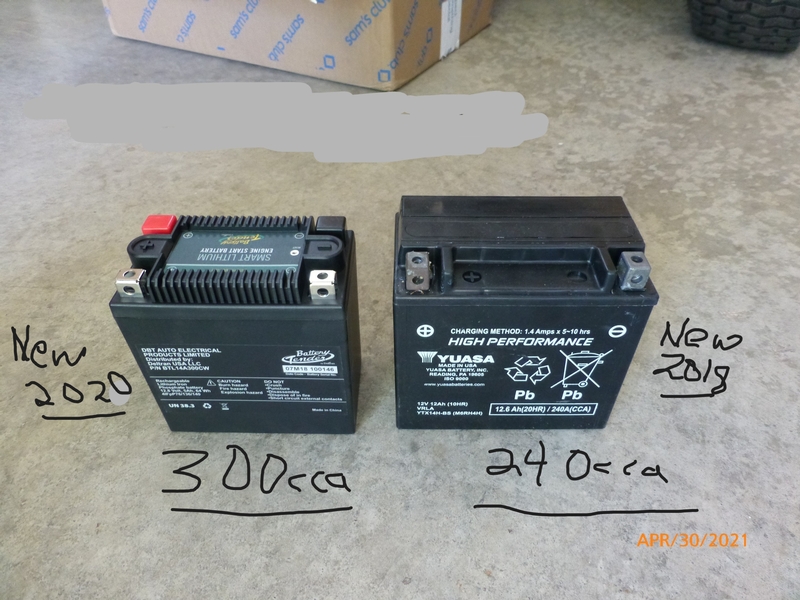 My first Lithium Battery came from Battery Tender. Rated at 300cca. But after 1 year it struggled like the lead-acid battery trying to start a hot engine with the electric fans running when I turned my Key. That is the difference from Gen 1-ZX14 to Gen 2-ZX14r, 2 radiator fans drawing more Amps. Kawasaki should have wired the ignition to start the engine first, then turn on the radiator fans on a hot engine. Maybe I could add a toggle switch?
