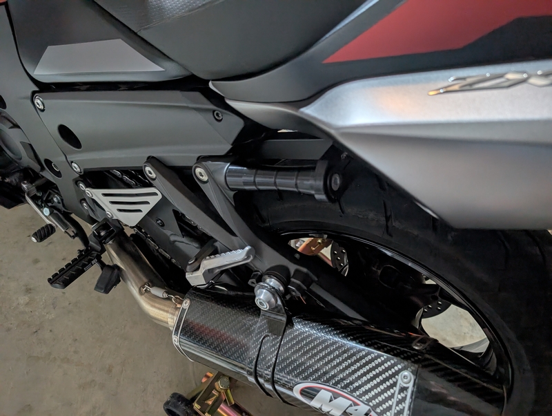 Putting the bike up on a paddock stand felt kind of iffy doing it solo, because I couldn't find anything solid to hold onto. I found the grab handle kit from T-Rex here in Texas and installed it.
