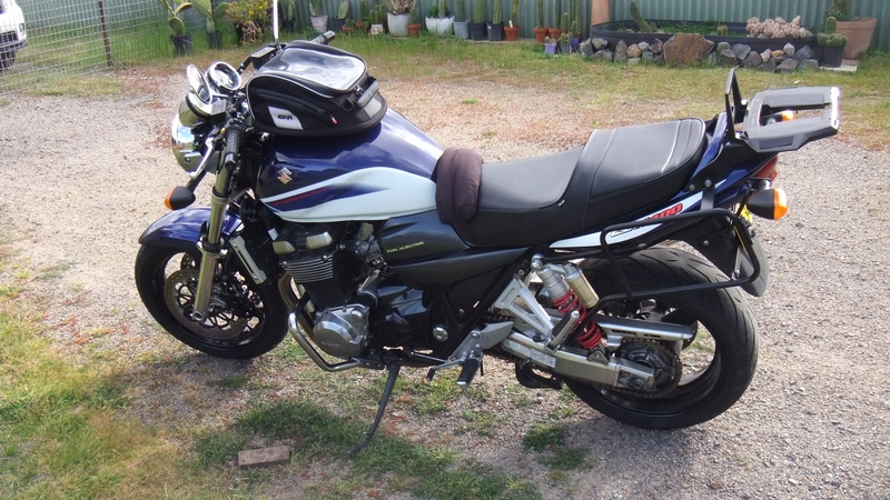 Hi there people, I thought I would show how I fixed my wind buffeting problem with my gen 1. I tried a heap of different screens but depending on how windy it is out there I'd get pretty bad buffeting sitting right where I want to sit on the bike. For me, wind buffeting can make riding so unenjoyable so as to make me feel like giving the game up. But after a few experiments I found that if I strapped a nice high piece of foam on the tank the buffeting was gone. So my fix is to put a tank bag on the bike, in my case it has worked a treat. Small price to pay. I don't ride at stupid fast speeds so I don't need to get down on the tank. You can easily fit 2 bottles of Bourbon in the bag. That'll do me :)
